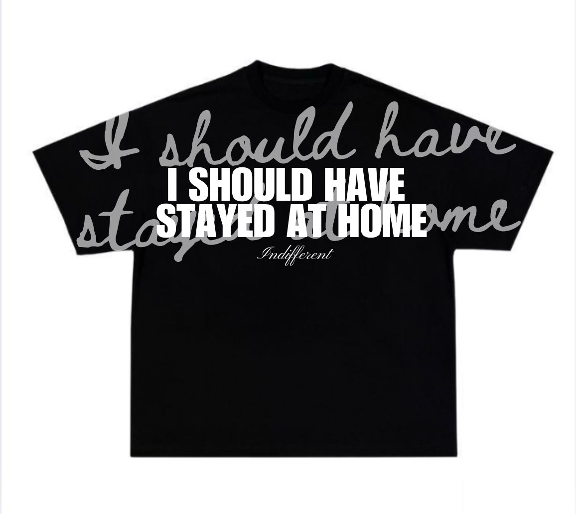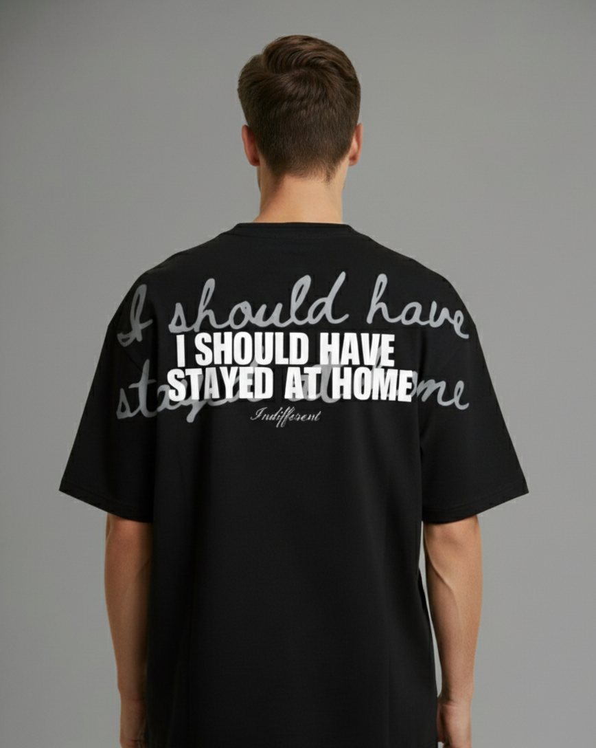 Crafted from 100% heavyweight cotton, this oversized tee drapes effortlessly with that perfect drop-shoulder fit. The front keeps it clean with subtle text detail in puff print format, while the back features bold puff-print typography that reads “I SHOULD HAVE STAYED AT HOME” — raised, matte, and soft to the touch.